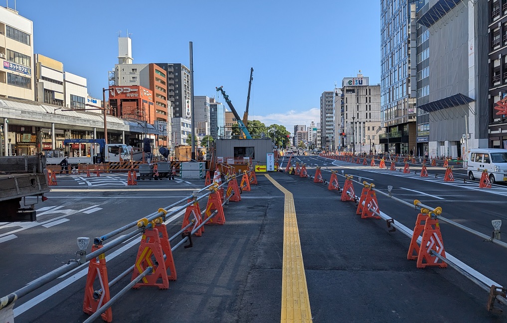 その後、駅前の西口ロータリーで工事が始まり2025年7月22日から西バス乗り場が一部変更に、東口エリアでバスターミナルの本格的工事が始まり、2025年10月23日から東側バス乗り場が変更されて現在に至っています。
